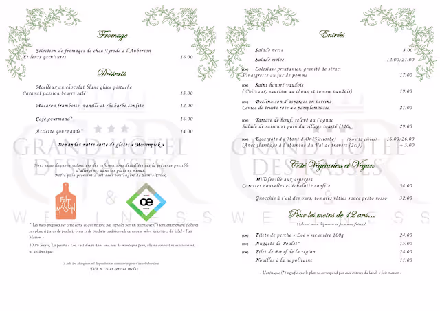 HISTOIRE – La salle du restaurant Belle Époque du Grand Hôtel des Rasses situé à Sainte-Croix date de 1913 ! Les détails architecturaux parfaitement conservés rappellent le raffinement propre à cette époque, et le lieu donnera sans aucun doute à votre repas des airs de grands soirs.