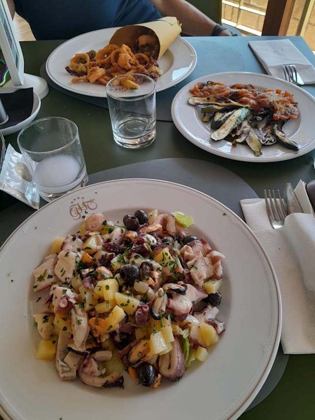 Totani in doppia consistenza e totani all’insalata con salsa di prezzemolo