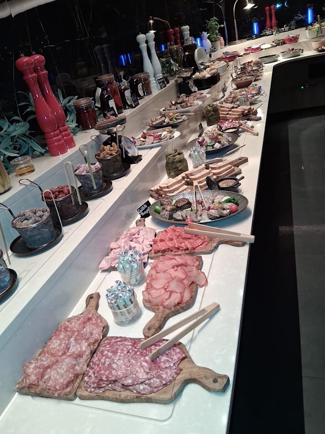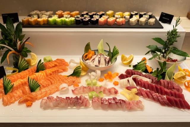 8/10+21Be careful to have a "casino appropriate attire", it's inside the casino. The seafood section was disappointing: boiled mussels and langoustines were mushy, shellfish are rubbery. The only ones that are correct were the shrimps, and the oysters (a bit dry). Drinks not incl., but the grill section was great: 2 types of pasta/gnocchi, 3 types of meat (veal, rumsteak, gigot), 2 types of fish (sardines, cabillaud) , with roasted garlic and challots. Sushi section was decent. Cold dish section is average, mainly because the artichoke was abysmal (rest is fine). Dessert was a bit dry but the sheer selection more than makes up for it.