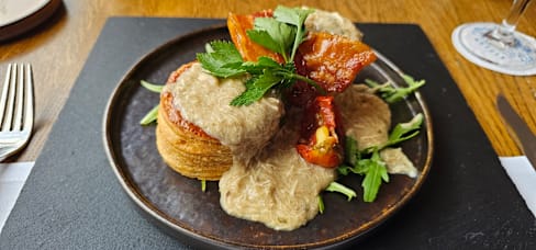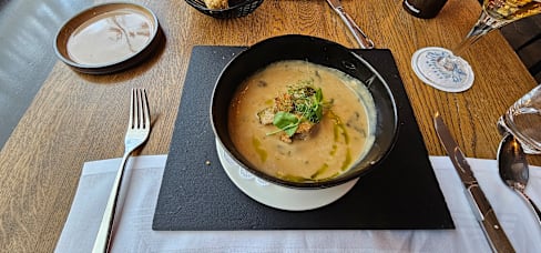 2/10This was one of the worst dining experience ever. We feel robbed. Firstly, they've sent us a bill to pay the whole amount in advance. It was a bit strange, but ok - let's say it's explainable since it was Christmas menu. Ambient was like someone put us in the time machine and sent into mid of (even than) outdated hotel in 1980s. Service was horrible, they didn't have a first idea what they were doing. Our table wasn't even set properly. We missed plates for bread and butter serving, and when we asked for it, waited 30min to get one. In the meantime we just eated it as it was. On every course we waited for an hour to be served. Drinks were lottery to get it served, but they charged every round immediately, in the middle of the course. Dishes were either luke warm, either cold. Portions were beyond very modest. Octopus carpaccio wasn't edible. They asked for the diet restriction in the previous correspondence, I've said that my husband can't eat sea food, they had remark at our booking, but still served him an octopus ... People started to leave already after the first course. This place shouldn't be even listed anymore. If we would think there would be sense in asking our money back, we would do it. But it would be just a loss of the good energy. Simply stay away from that place.