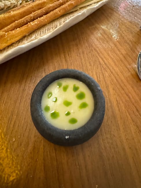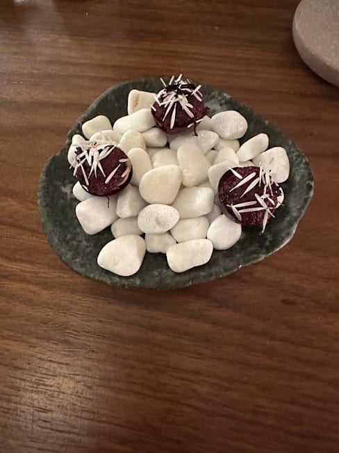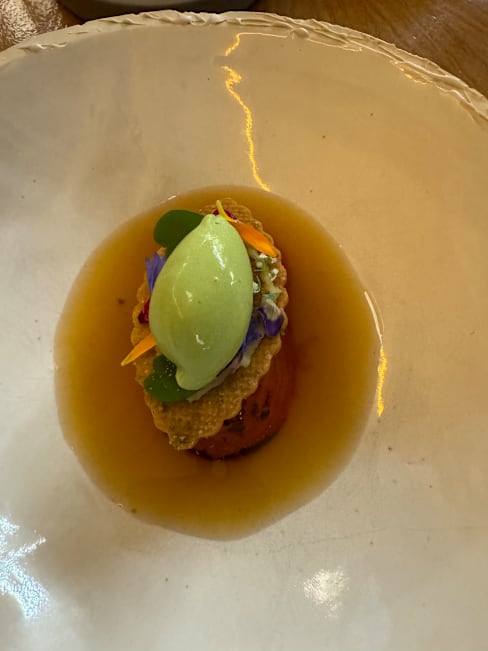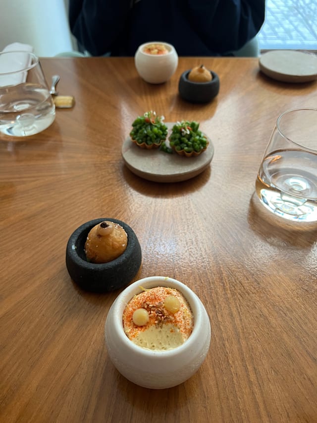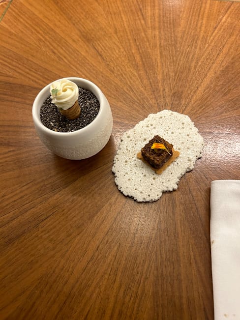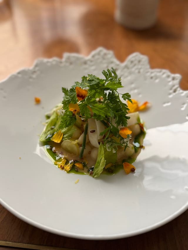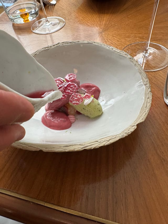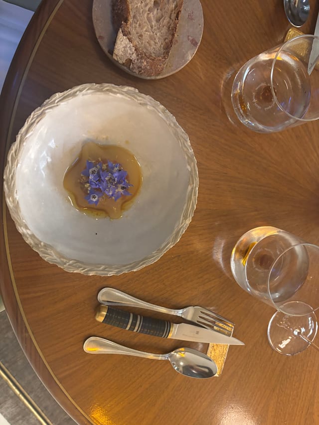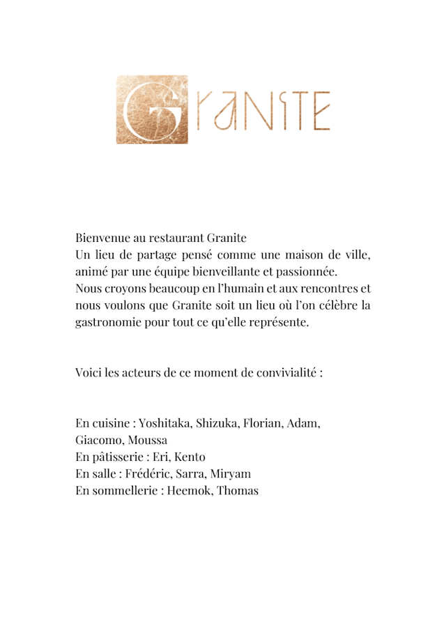 10/10The food stole the show at dinner. Each course presented a complex blend of flavors, incorporating various vegetables, spices, and textures. The progression of each course and its accompanying wine pairing seamlessly built upon the last. Starting from delicate and mild flavors, the journey culminated in the last course, featuring bold flavor combinations that compelled me to close my eyes and relish each bite slowly. The wait staff demonstrated exceptional attentiveness, ensuring we had ample time to savor each course while promptly serving the next to maintain the ideal temperature of the dishes. The presentation of the exquisite Bordeaux we selected was impeccably executed, paying homage to the wine's quality. We were grateful for the patience of the wait staff as we indulged in conversation and savored the culinary and oenological delights. Our dining experience at Granite was unquestionably the highlight of our trip to Paris, leaving us with a lifelong memory.