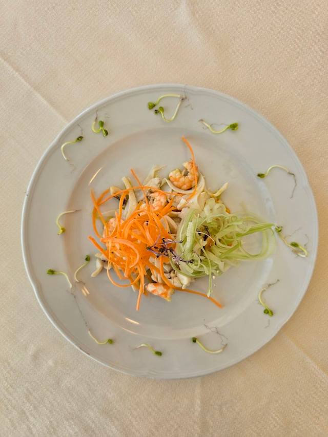 - Insalata di puntarella, arancia e mazzancolle