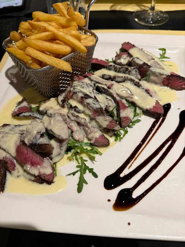- Tagliata de boeuf accompagné d'une sauce au gorgonzola et pomme frites