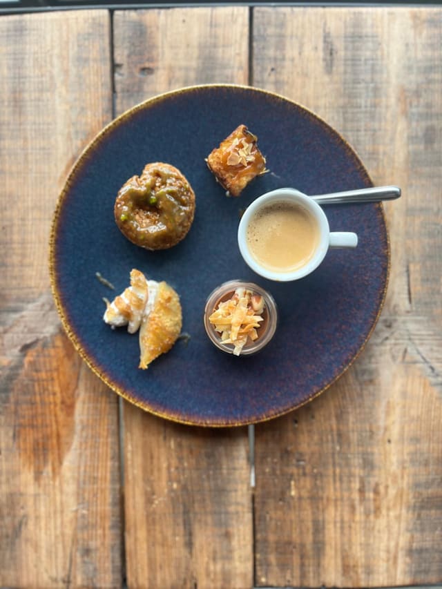 - Expresso ou thé servi avec 4 mini douceurs