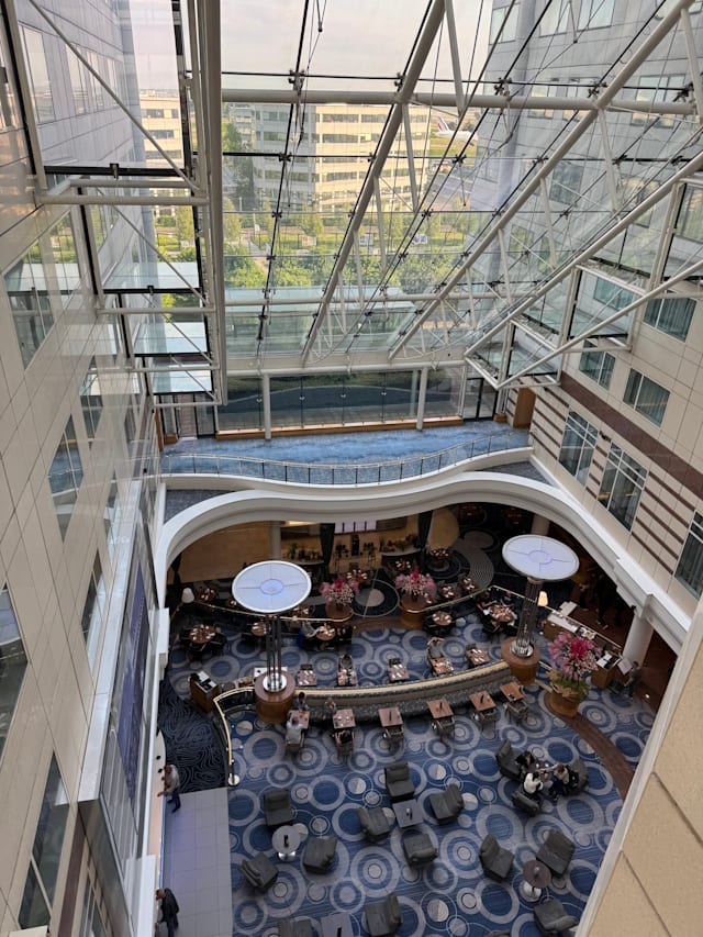 6.5/10The food was good albeit a limited choice. It was expensive, the usual issue of hotels taking advantage of a captive customer base. From the name you imagine a roof-top restaurant like the Hilton at Hyde Park Corner but you end up sitting in the lobby with all the comings and goings of a busy hotel (shoot the architect) and that doomed the ambience from the get go.