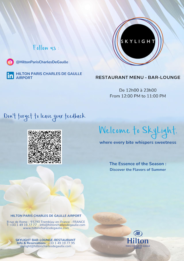 4.5/10The food at the Skylight was terrible. First of the restaurant is at the Paris Airport and they served us boring warm tortilla chips in the bar, no salsa or dip just warm tortilla chips. We moved to the dining room and ordered the Caesar Salad with Prawns. The Prawns were barely warm and very small for Prawns. They were obviously precooked and set aside until needed. The salad had just a little dressing and that dressing tasted nothing like any Caesar dressing i have ever had. The worst part of the meal was what was titled "traditional French Onion Soup." This soup consisted of a warm vegetable broth with onions and burnt cheese on top, no taste just broth. It was hard to tell if even the onions were real. I would not recommend this restaurant and would encourage anyone staying at the Hilton to go to any of the other restaurants in walking distance.
