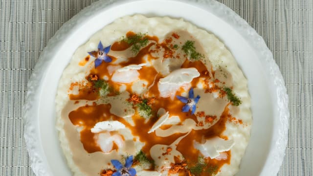 Risotto carnaroli riserva “san massimo” con bisque scampi, asparagi