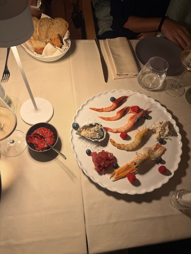 - Carpaccio di pescato, fagiolini, edamame elicrisio e beurre blanc al vermut