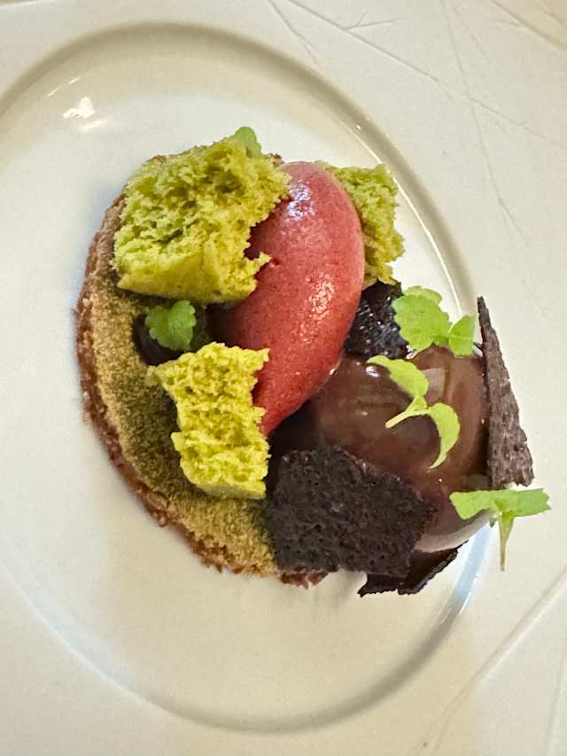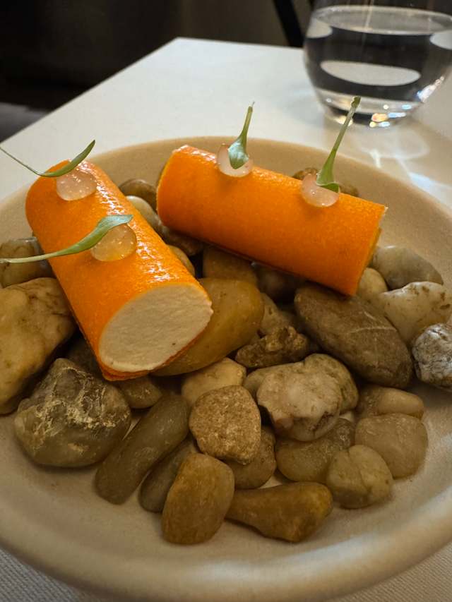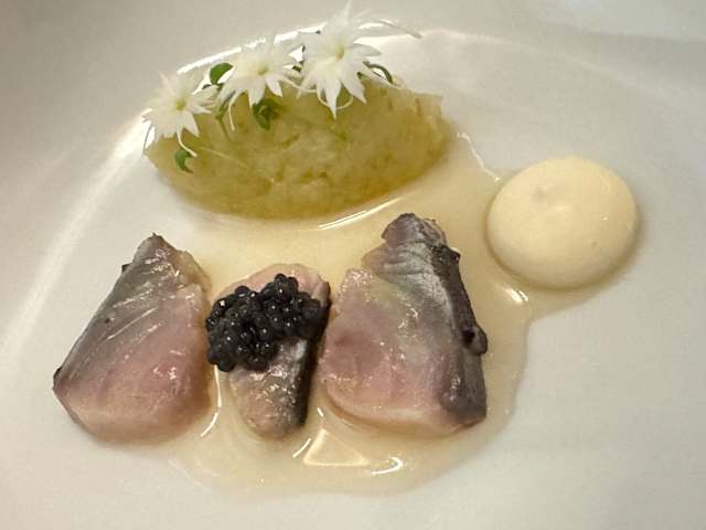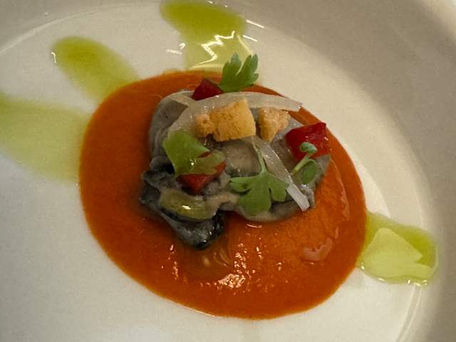 5.5/10I found the food a bit hit and miss. A number of the dishes were a bit too intense (acidic or salty) in their flavours, i. e. ‘brash’. Others were underwhelming in their flavour combinations. On the other hand, I usually find the meat dishes of tasting menus the dullest of the meal and Grenache’s wagyu beef was delicious. The service was efficient and friendly, but I did have to grab the water bottle a couple of times myself to refill. The seating was outdoors (summer) in lovely surroundings, but on a through street, which meant if you were seated close to it, you constantly had to witness parades of tourists lumbering past. We had actually moved there from the original table because it was right next to a speaker playing music that was a bit too loud (and clubby) for our taste, although that is the bane of most restaurants these days. They attempt to create atmosphere through music, instead of just letting the quiet din of dining guests set the tone.