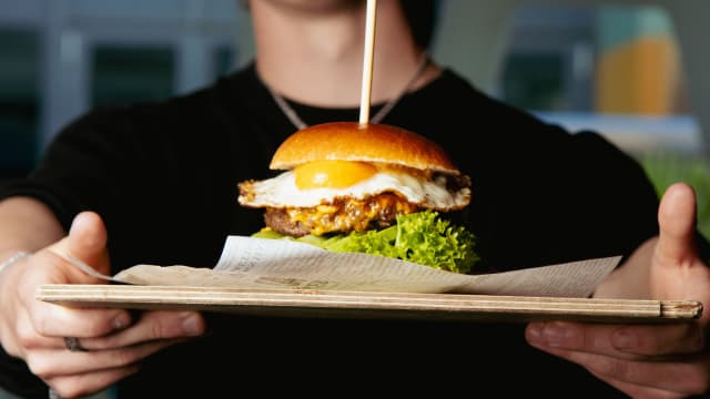 - Sla | avocado | tomaat | bacon | cheddar | spiegelei | burgersaus | friet