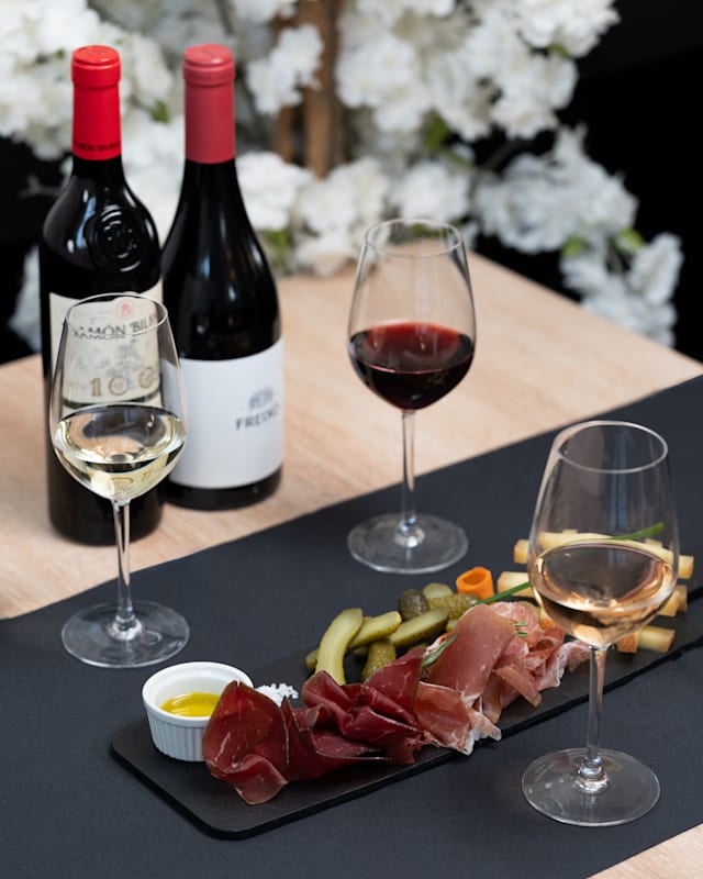 - Assiette de charcuterie espagnole traditionnelle, dont jambon ibérique affiné pendant 18 mois, accompagnée de tapas de tapenade, de fromages portugais, de pan con tomate revisité et de tortilla.