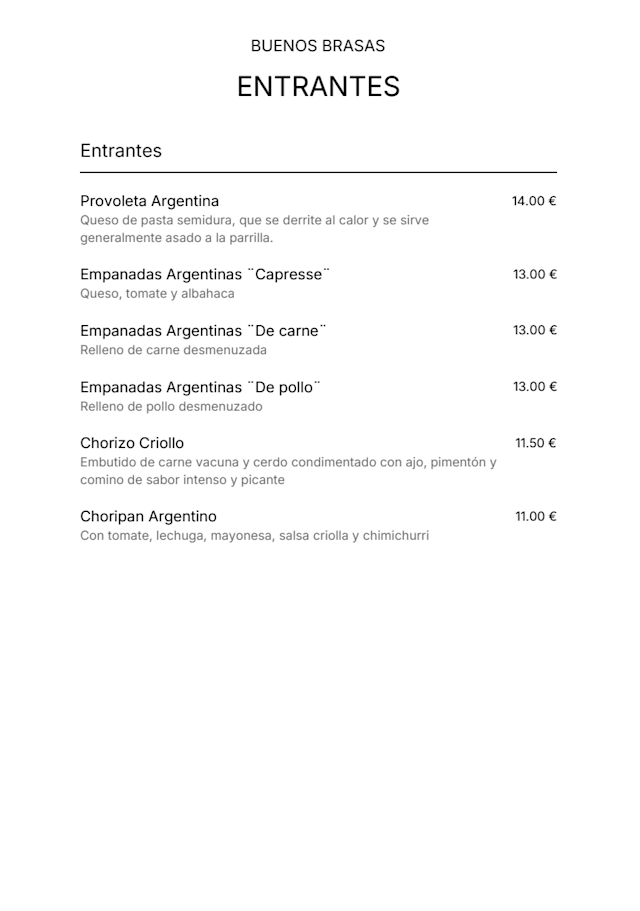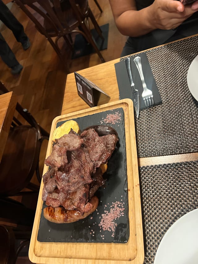 8/10We ordered the parrillada for 2. The meat was of mediocre quality, was served on a wooden platter and got cold very quickly. By the time we finished the first piece, the rest was already cold.