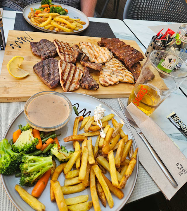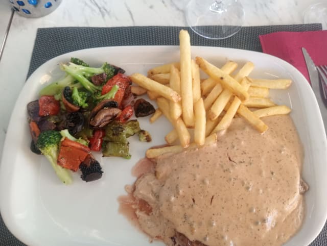 6/10Lamp chops were a bit over cooked and dried. shrimps and potato cips are made of frozen products. In spite of informing them that we were coming from fork, there didn't put the discount in the bill initially. so we had to tell them again. and then we noticed that price of one meal was 5 euro more in the bill. they said they had to call their boss to change it so we have to wait. totally failure.