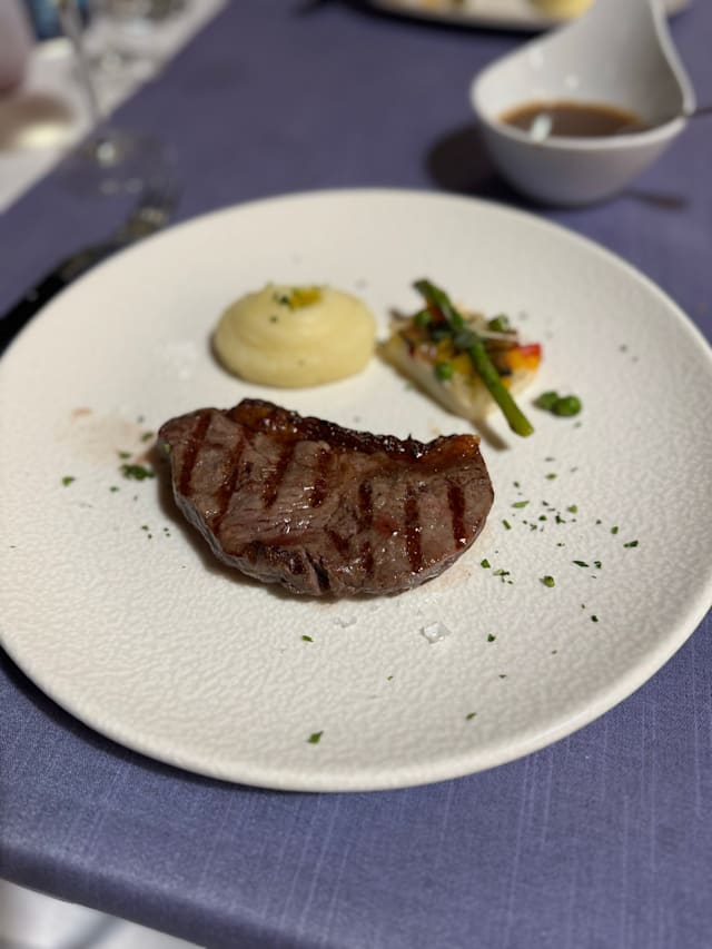 8.5/10Very royal place to dine. Cosy and relaxing. The service was very nice. Thank you Juan Jose. We had as a main course seabass and steak. The seabass was very good…the steak was Ok…..not the best I have had……. We had nice local wine…… I like this place.