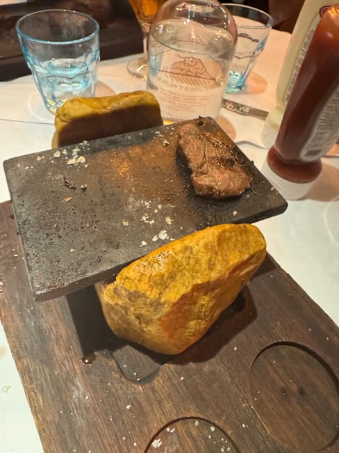 8.5/10There was a big party in which might be one of the reasons service was a little slow at first, but other than that food was great the waiters were nice. The Rioca was decent. I would definitely recommend this restaurant for steak, and definitely go for the 60 day old coat ask for it medium rare and get your own hot plate to cook it a little further which added to the taste and experience.