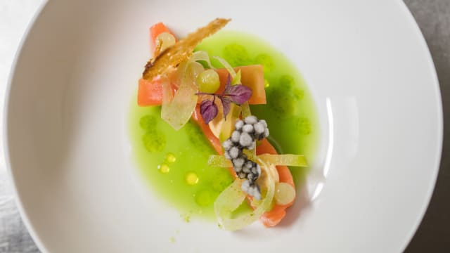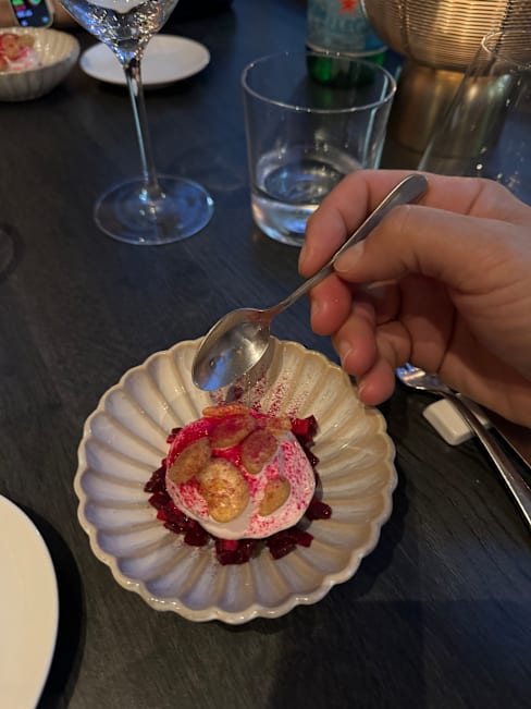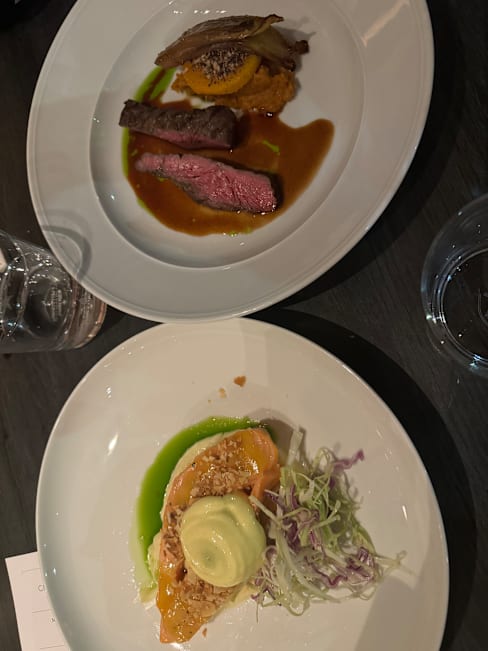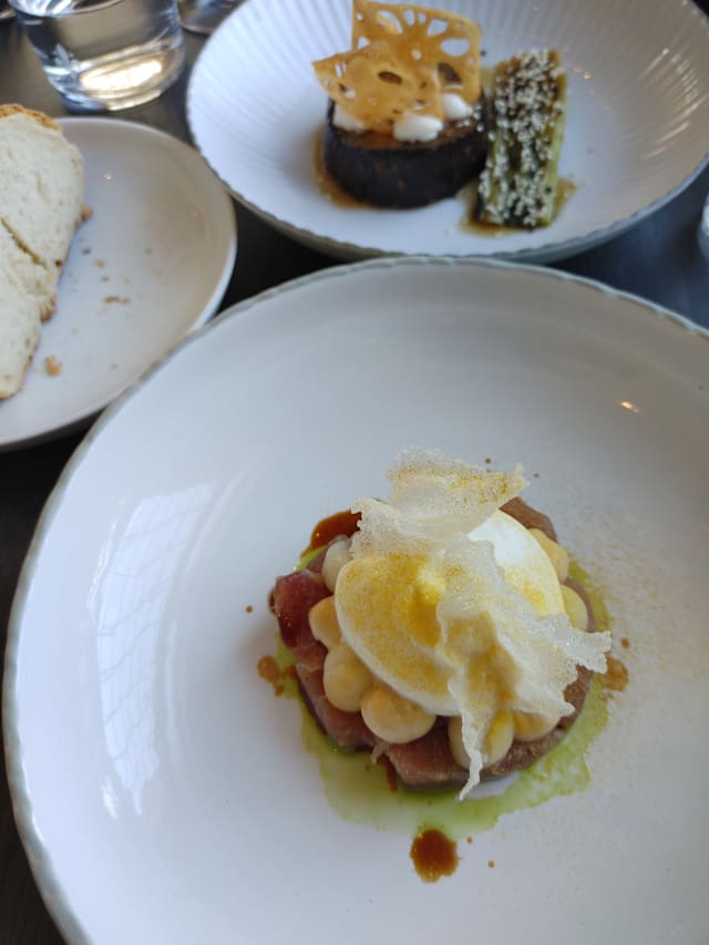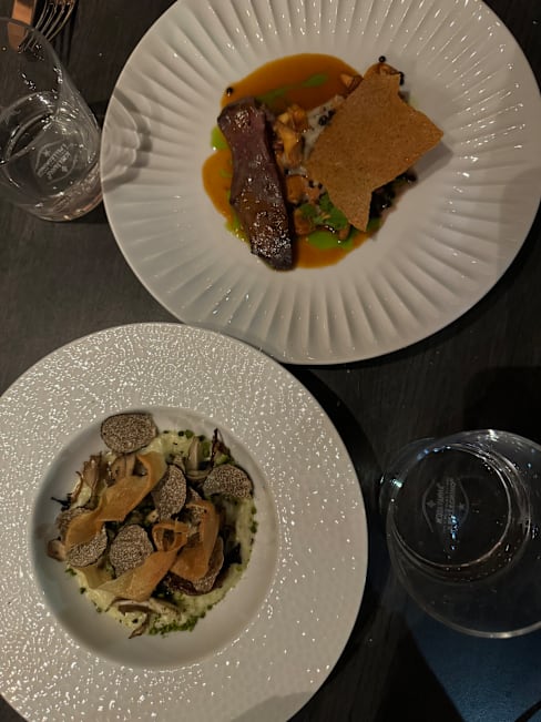 8/10An inconspicuous quiet restaurant in Nijmegen. A little fiddly to park as there is no dedicated parking lot with the restaurant. We went for our 20 years wedding anniversary and ordered 4 course dinner with accompanying wine for me. The front part of the restaurant is quiet and classy. We were sat at bay window against the street. It is quite chilly due to single glazed windows and the the heater is not on yet. The service is excellent. The waiters are very frendly, attentive and knowledgeable about the dishes. The wine suited the taste of every dish. We had a very enjoyable evening.