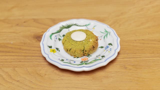 1 croissant épeautre quinoa fourré au cheddar vegan fondant, tomates et pickles d’oignons rouges.