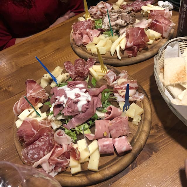 selezione di salumi di Norcia e formaggi umbri, porcetta di Bevagna tiepida