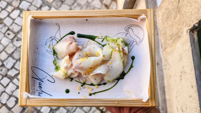 - Bacalhau lascado, salsa e maionese de alho e ervas