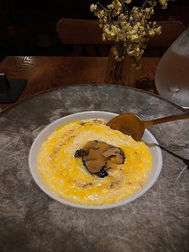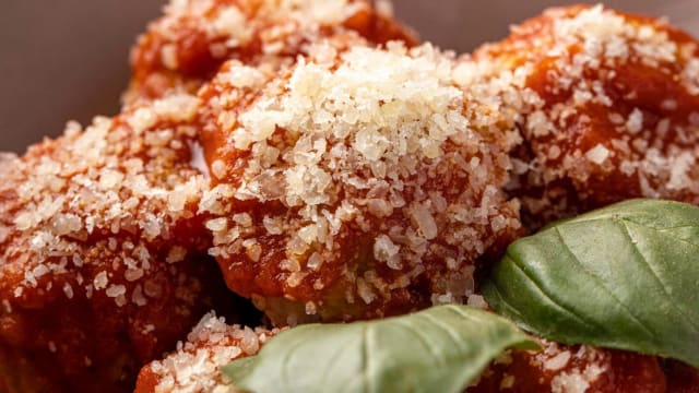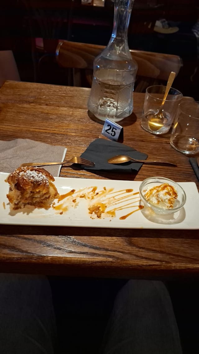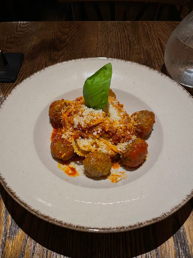 10/10First time and it did not disappoint! Sat outside and the service was spot on. Delicious food. Wife had pinsa and I had the veal meatballs. Finished with some tasty desserts. Highly recommend and came back the next day for aperitivos and the freshest caprese salad.