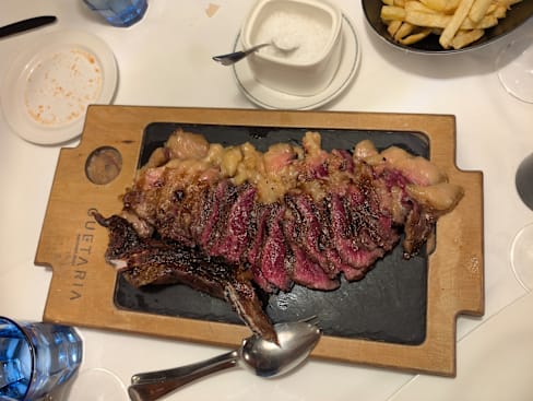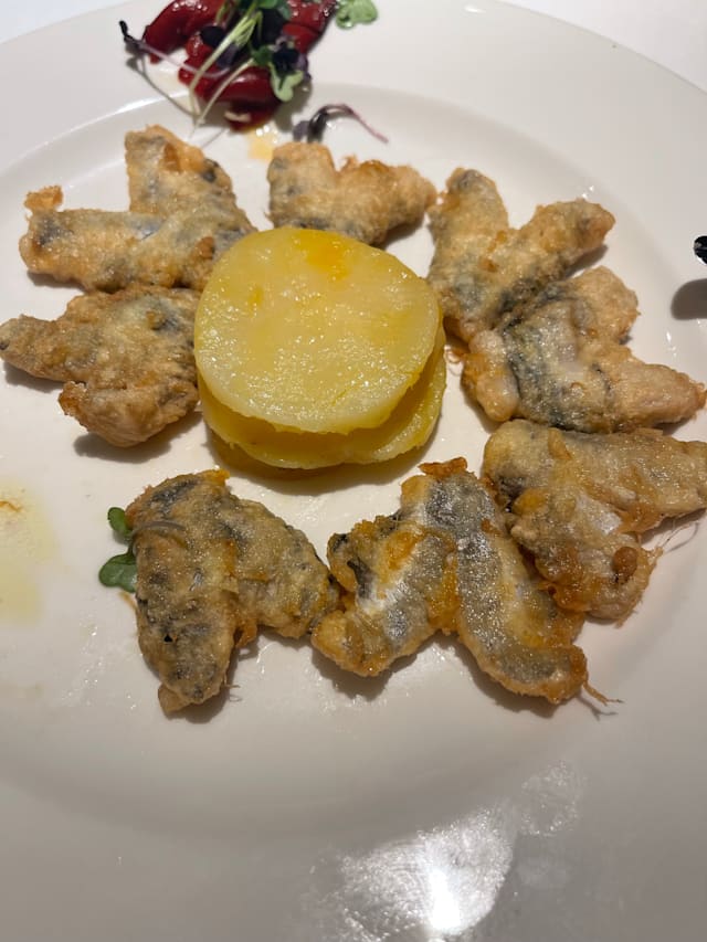 10/10This restaurant is exquisite! It is visited mostly by locals and for me is a great sign. Upon arrival they serve chistoras ( a spanish sausage ) on the house. As well as a portion of bonito marinated with onions. We had the cxangurro croquetes, simply delicious and the cod tortilla out of this world. As main course we had a mushroom rissotto, which was out of this world. Great service and excellent food. Highly recommended.