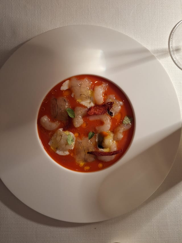 3.5/10First of all all of the food wasnt tasty and was very dry, its a real real shame for a michelin restaurant-and I’ve been in many. Their so called “capuchinno” with squid almost made me vomit, its outrageous. The main dish that was with mullet and vinegar was extremely bad tasting, which by the way looked like a soup. The staff tried their best to make our experience the best but from all that we ate ONLY the wine was worthy of a michelin star.