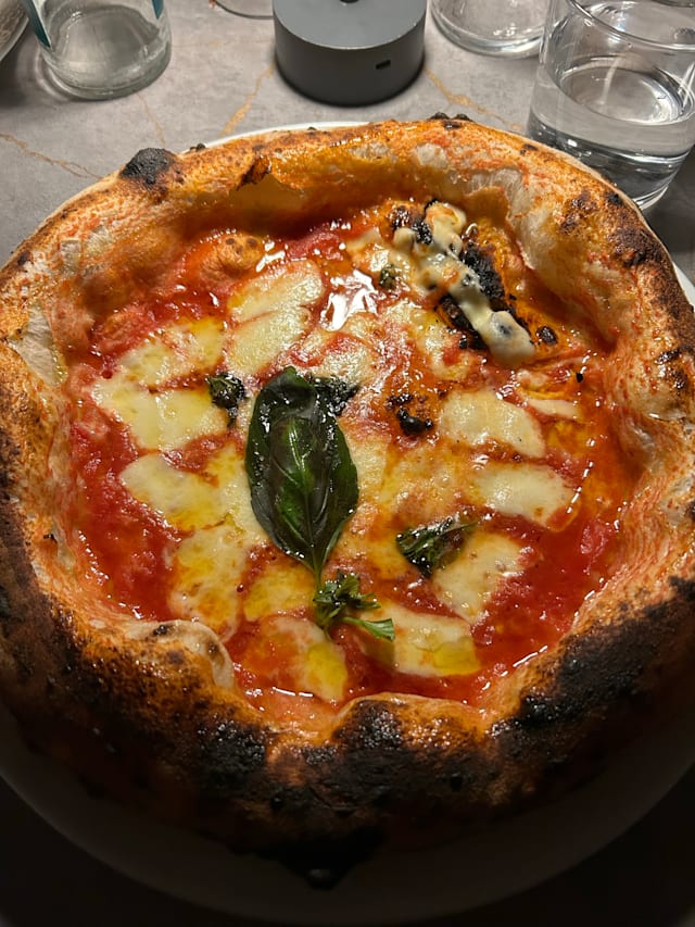 Pomodoro san marzano, fiordilatte, spianata piccante, nduja, fili di peperoncino, olio evo e basilico