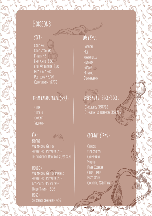 EcuadorianPeruvianSouth AmericanBirthdayBistronomicBrunchContemporary cuisineCreativeGood for a business lunchGood for familiesGood for groupsLunchOrganicRomanticSeminarTraditionalWith friendsBlack FridayTheFork FestivalGluten freeHalalLactose intoleranceLocally producedNut allergiesOrganic foodPeanut allergyVegan dishesVegetarian dishesChildren's menuDog-FriendlyWheelchair Accessible