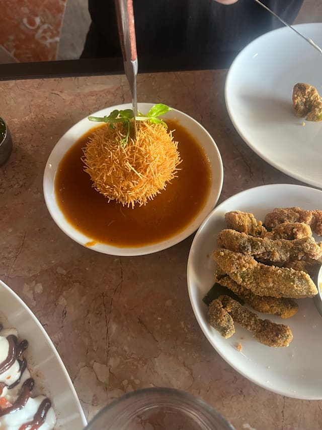 8/10We had 4 starters and two plates to share after we asked our waitress. The chicken Tandoori was outstanding (for us) and all others were very good indeed (soft crab, lamb chop, grouper fish, etc). Service was excellent from all the team involved. It was a rainy and rather depressive night and we found the tables for two rather small ,given the amount of food we ordered and drinks we had, but somehow the service team managed to deliver them one by one and without impacting the rest of our experience.