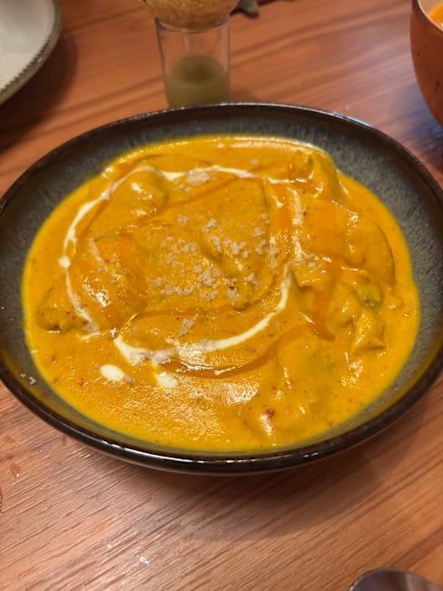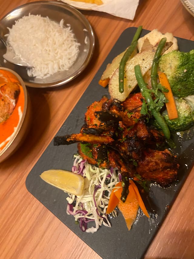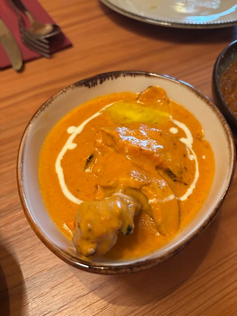 7.5/10Our dinner at Gurkha was very good. It's a simple but attractive restaurant and even though busy was pleasantly quiet. We only ordered two mains: a spicy prawn curry and baingan bharta, with naan, rice, chutney and raita. The mains were tasty and well spiced to our specifications. The food could have been a bit hotter (as in temperature); the naan was sent back and replaced with one that was much better. Price for two with one beer and one soft drink: Euro 38.