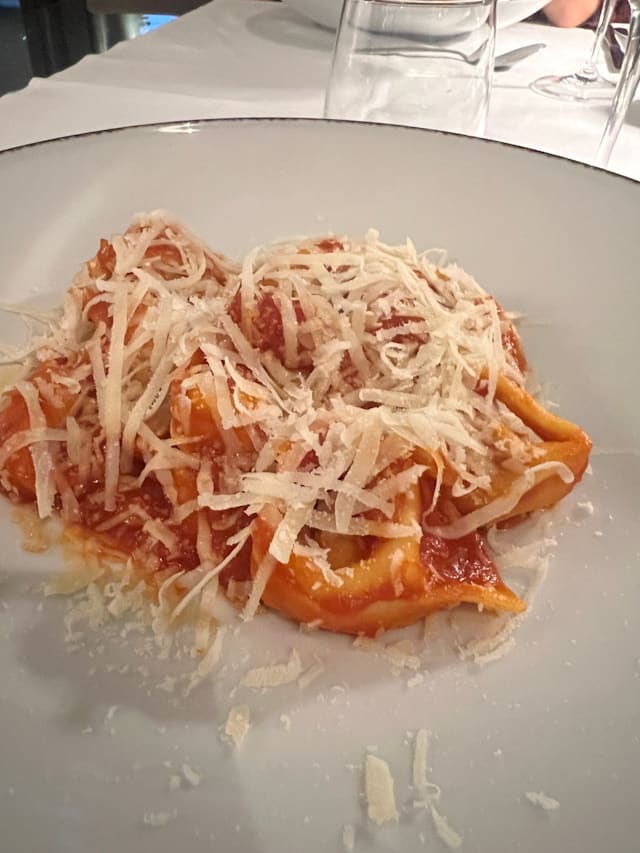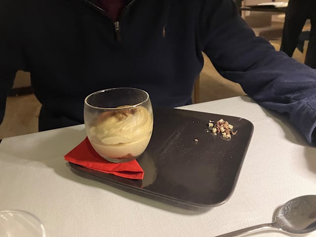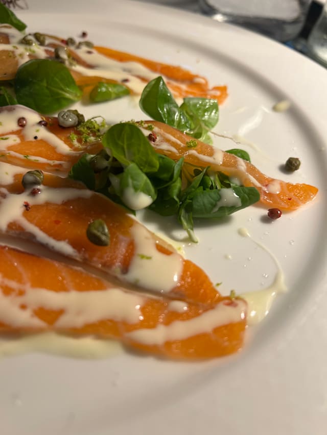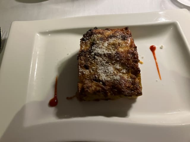 7/10The service and ambience were both very nice, indeed. The food was a disappointment. The veal was tough (I could not finish it), the bolognese sauce on the pasta was unremarkable, the lasagna seemed a week old and was unappetizing to even look at (appeared burned on top, the cheese was hard to cut through). The only dish that we enjoyed was the carpaccio con sausa senape - it was perfection. We stayed in the hotel for a week and gave this restaurant two tries, to be fair. I simply cannot recommend it to others.