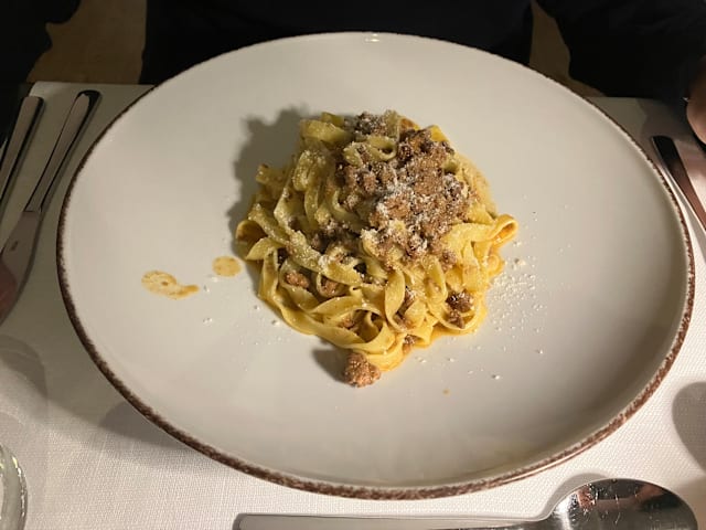 7.5/10We ate our first night in Bologna at our hotel as many restaurants were shut on a Sunday evening. The food was good as was the service if somewhat clinical especially having eaten in many fantastic restaurants throughout our trip. We had become use to eating with the buzz of chatter from local Italians eating in the restaurant and found the ambience affected our opinion xx