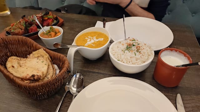 10/10This was my first time eating here. And I must say, I am very surprised by the service, vibes en food. It was really delicious. Will be coming back for sure. We tried the chicken biryani, chicken tika masala and shahi paneer and it was better than expected. The naans and rice are also very tasteful. I really liked the earthy cup for the mango lassi. It gave Indian vibes. I eat at alot of Indian restaurants and this is my new nr1.