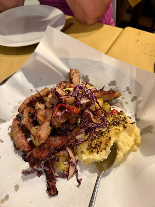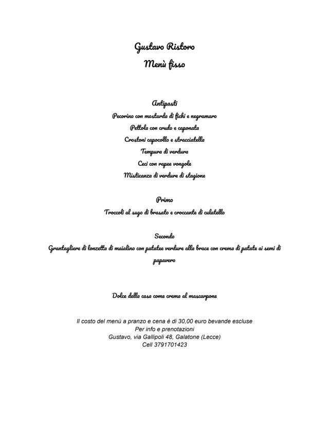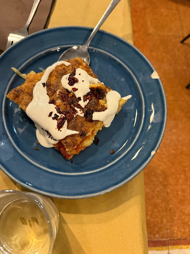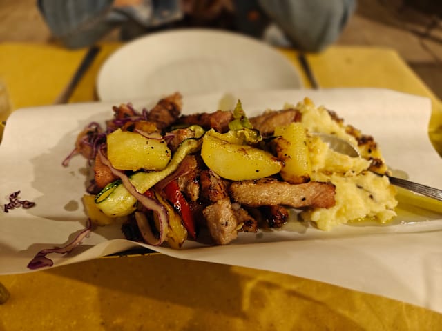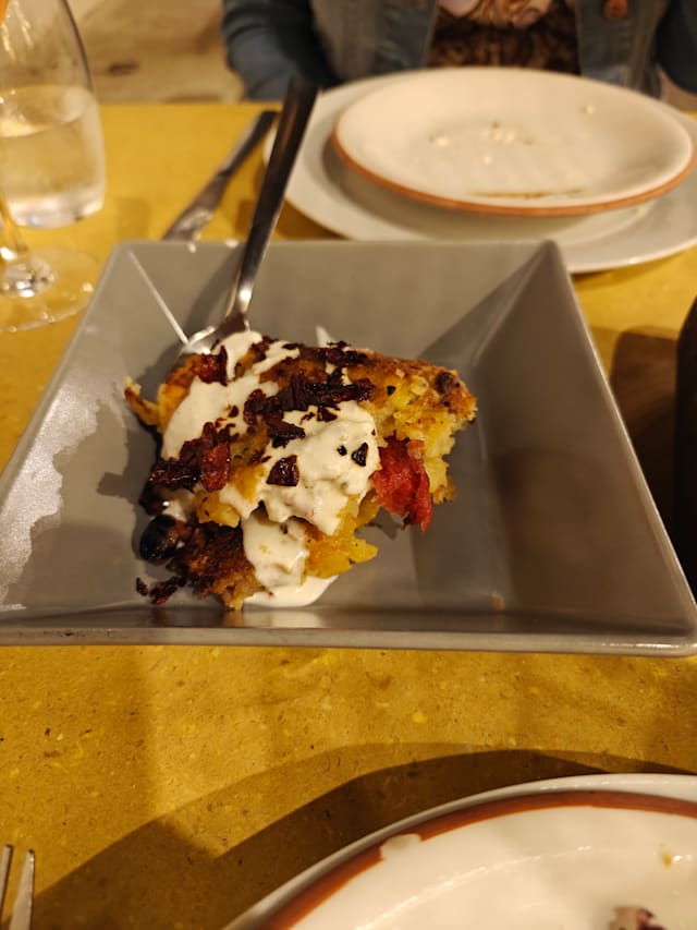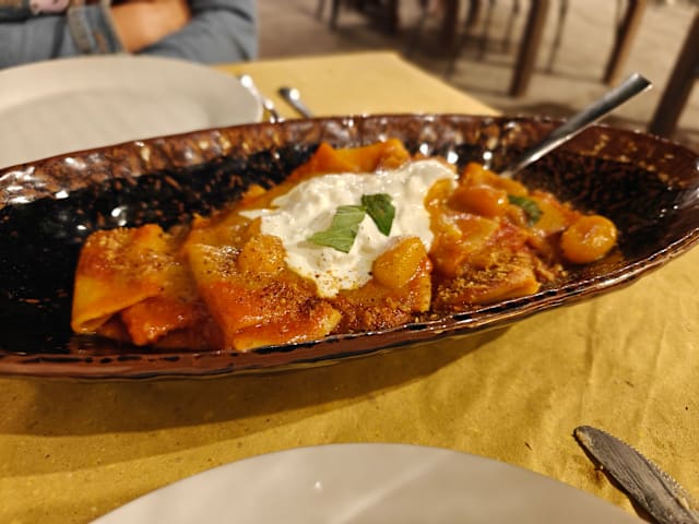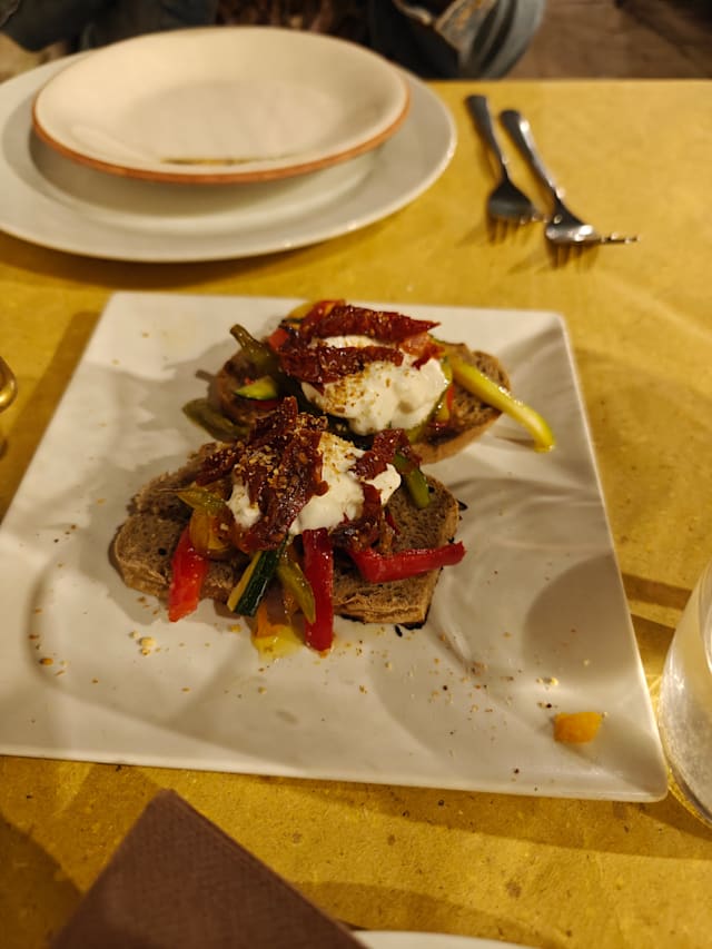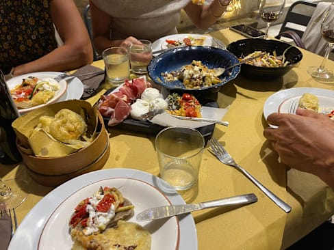 10/10Fantastic food at affordable "cucina povera" prices. The concept of a fixed menu, I e. there is no menu, allows Gustavo to concentrate on the quality and variation of his starters and primo piatti. Tempura fried vegetables, three tomato sugo, fig jam and cheese, all were Fantastic. and the main... pata negra pork with two types of potatoes was sublime. A do not miss recommendation.