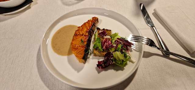 Trota salmonata marinata alla rapa rossa, caprino all’aneto e quinoa soffiata