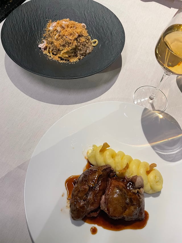Animella morbida e succulenta, esaltata dal contrasto vivace del radicchio all’arancia e dalla profondità della salsa all’aglio, per un’esplosione di sapori inaspettata.