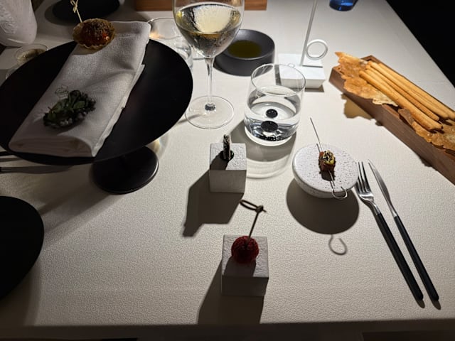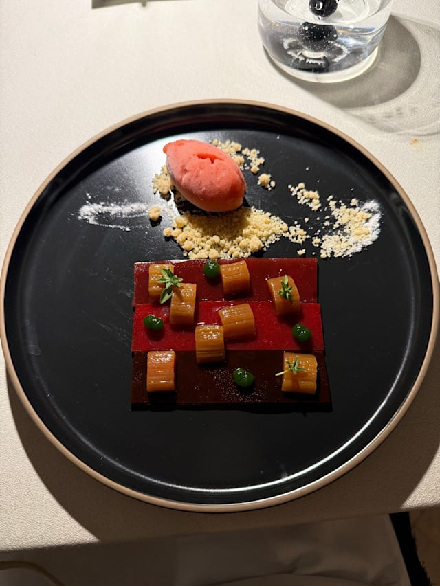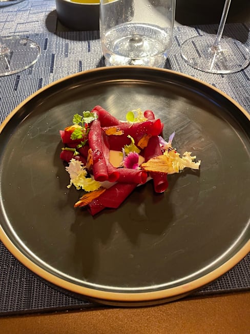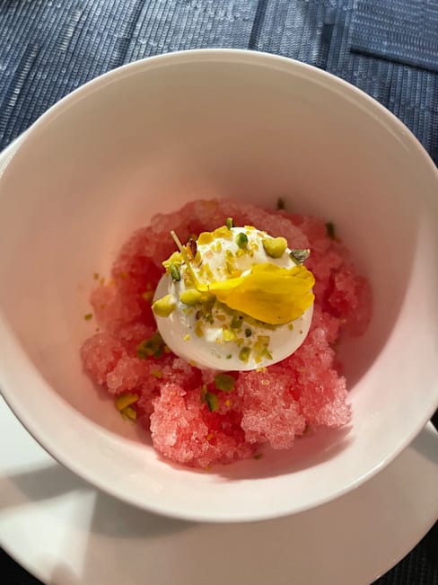 7.5/10+7The course with watermelon was fantastic, it is not the best I have ever tasted, but the texture of it played with my mind! I did overall miss some more flavour. The wine menu we had was not the best and it seemed like something not that Well planned. I dont drink red, and I know that is my fault, but every other places I have been the still manage to find a white that can supplement the food, this was not the case here. It was a good glass of wine, but that was it. The place is lovely but we didnt experience that wow effect.