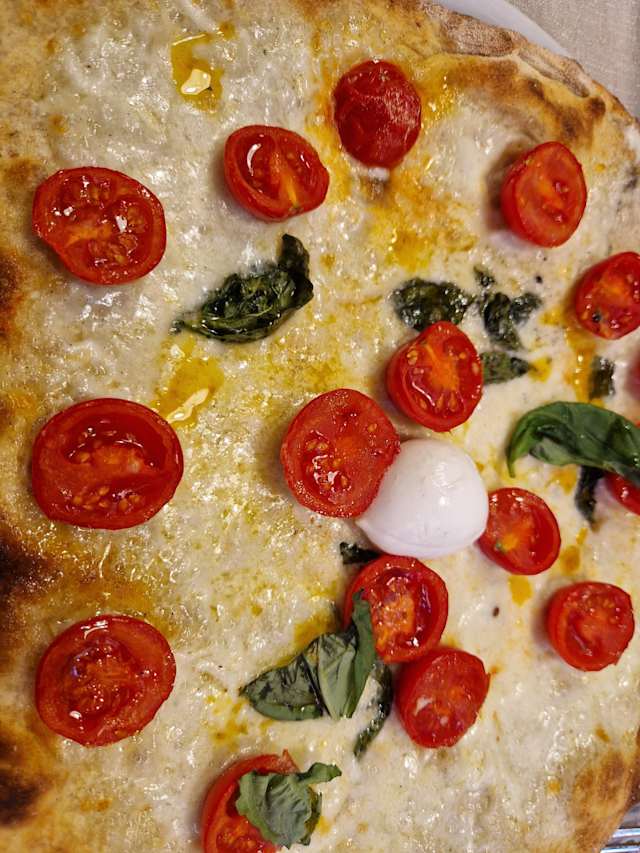 - Burrata, pomodoro, datterini, salsiccia, basilico