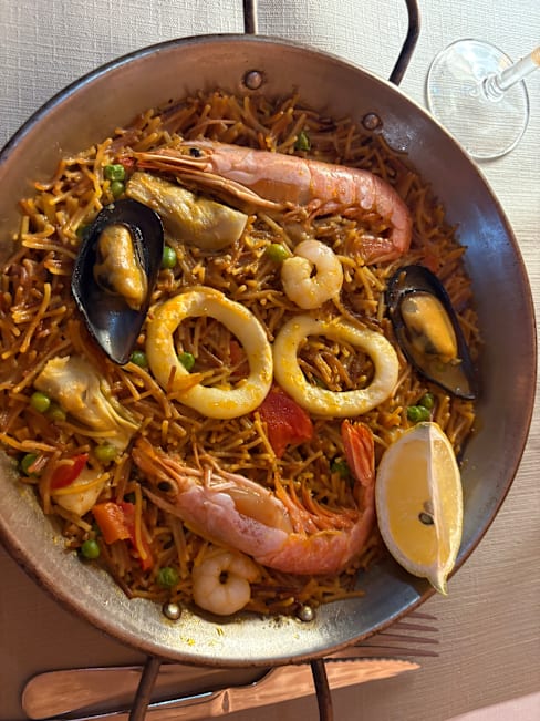 7/10Paella was disappointing - 90% of it was rice. I ordered the mar y - it has 3 mussels, 2 prawns, 1chicken thigh and one tiny pork rib it was not value