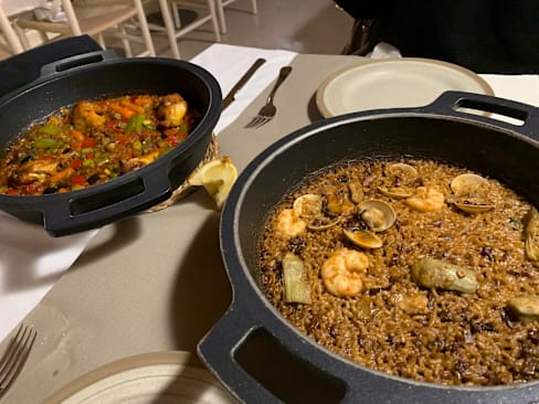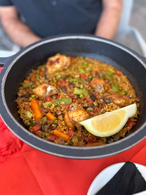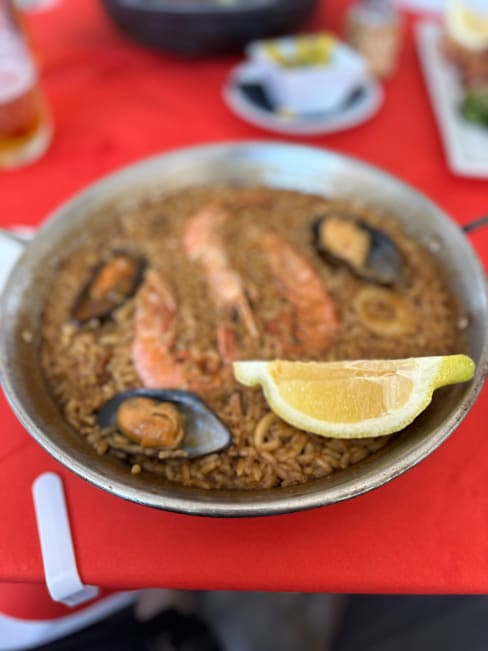 5.5/10It was my first night there I went on some online recommendations and it was in a beautiful plaza… I knew it was going to be touristy, but it was very over priced easily by 50%… I have a coupon for 30% off but then the art we argued that it was not applicable to my meal did say 30% off of food not drinks . But I think what was most disappointing was that I felt steered so wrong online the paella I got was sort of hardened over. There was one piece of seafood placed at 12 o’clock 3 o’clock 6 o’clock and 9 o’clock and that was it, and the rice tasted very Briney. The sangria was good. The waiter was very nice and patient and the plaza was beautiful but the food was an absolute miss