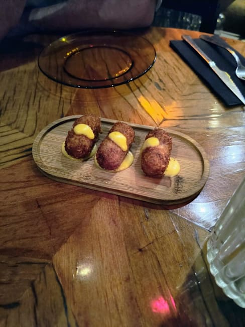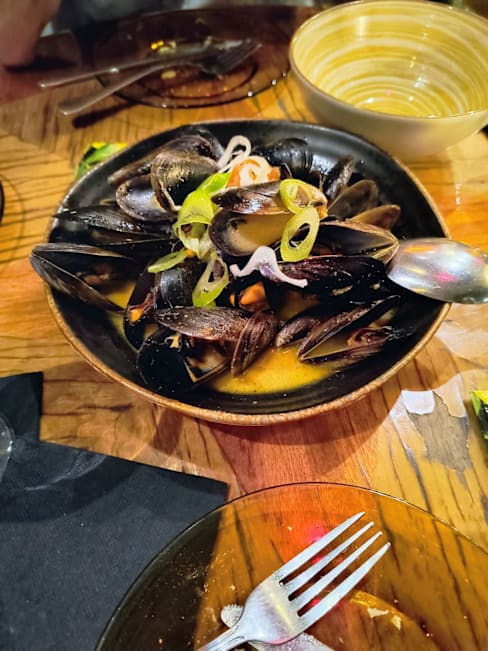 10/10We stopped by for lunch on the weekend. All the staff were courteous and friendly. Being a live music bar, the ambiance and decor was very charming and filled with lots of unique art. We ordered the croquettes and mussels with green curry as entrees, and tuna tartar and suckling pig terrine as principal plates. We were blown away at the quality and blend of flavours with each dish, in particular the tuna tartar and green curry mussels. Although there was no live music during lunch, we were advised they had live music/shows every night at 21h and plan on coming back again one of those nights (though the food itself is delicious enough to warrant going on it’s own) !