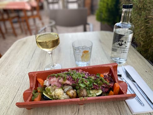 8.5/10Delicious food perfectly cooked (octopus served on a tile).