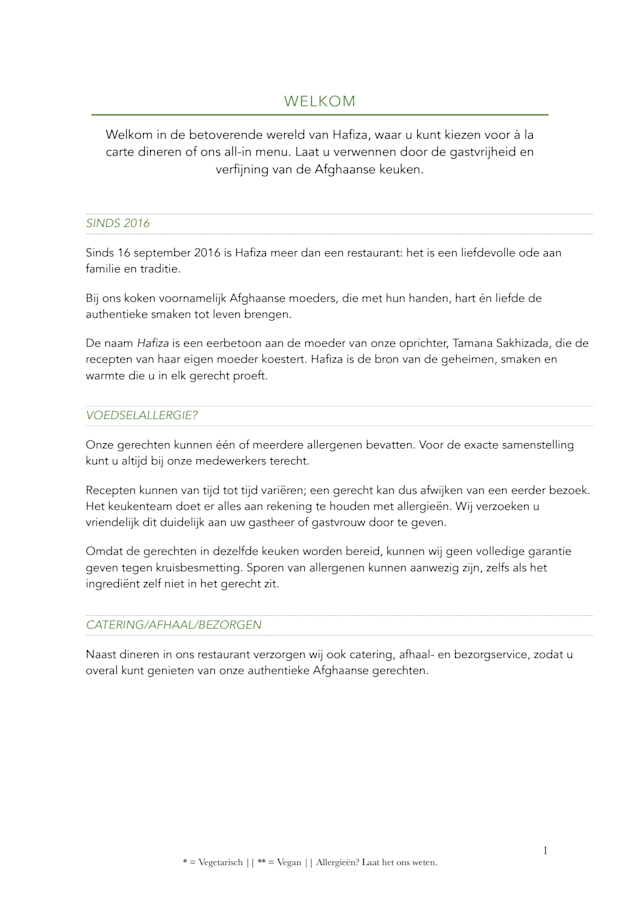 In restaurant Hafiza maak je met je hele familie, vriendengroep of collega's op een ongedwongen manier kennis met de Afghaanse keuken. Het menu is overzichtelijk, maar heeft genoeg ruimte voor uiteenlopende specialiteiten. Behalve uit verschillende grillgerechten kun je ook...