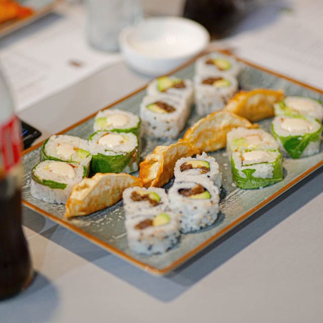 - Spring roll tempura* légume, avocat x8 Gyoza légume frit x3 Sushi concombre x2