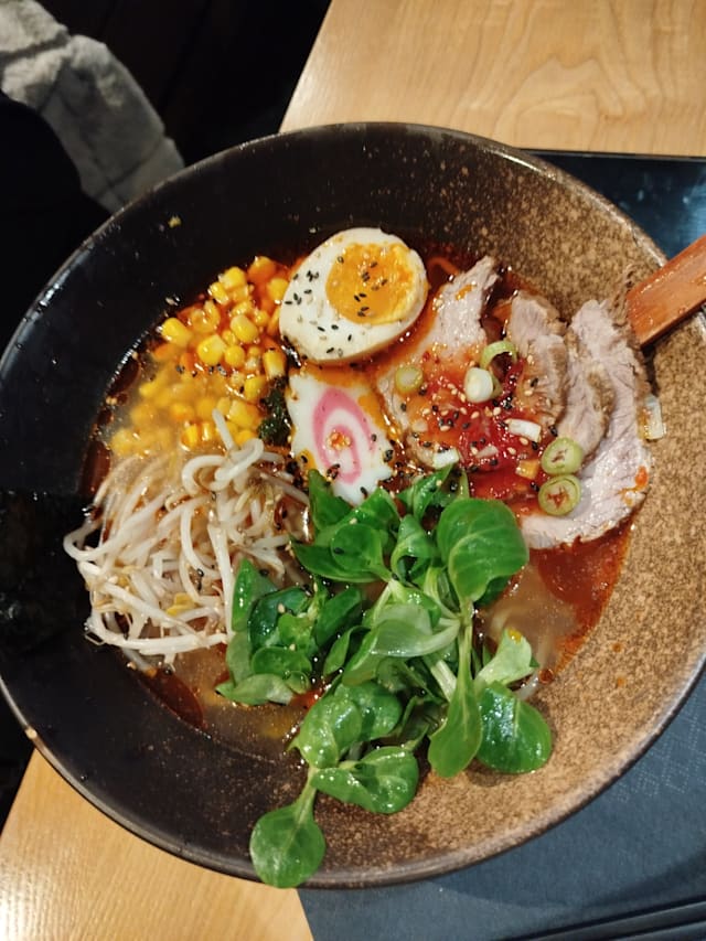 9.5/10Impressive ramen, true Japanese style. We tasted both the traditional and the sesame variation. Nice service and location. Highly recommended.