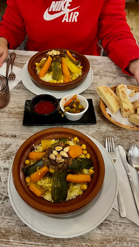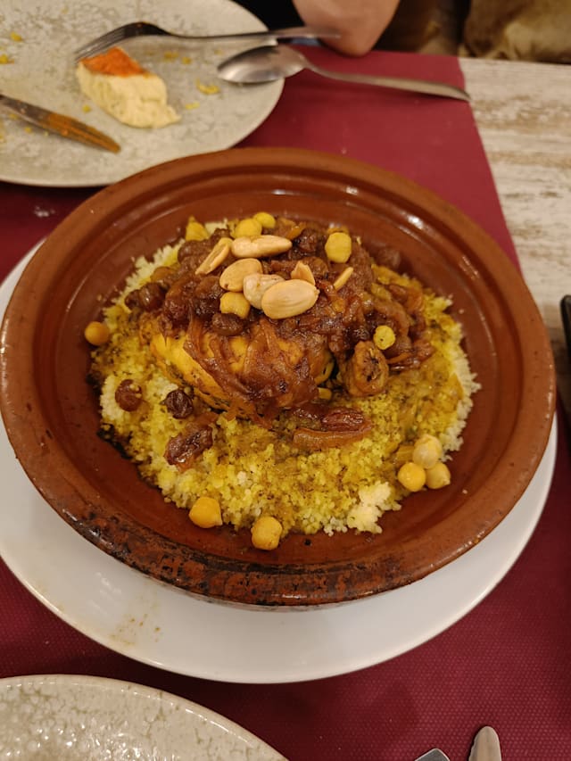 9.5/10The food here is absolutely fantastic, and the prices are maybe a bit too low. We started with beef skewers as an entree, and they were perfectly seasoned and tender. For the main course, we tried the veal shank tagine and the chicken lemon tagine. Both were outstanding, rich in flavor, and cooked to perfection. To finish, we had Moroccan tea, which was so good that even my Moroccan mother-in-law (a tough critic!) couldn’t compete. If this place were in my hometown, I’d be a regular! Highly recommend for authentic, delicious food at a great value.