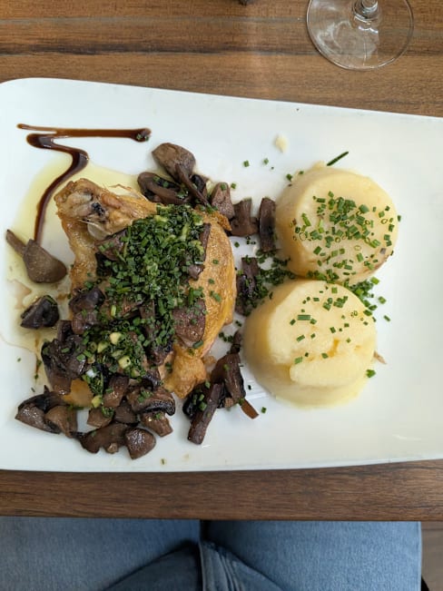 10/10Small menu for food, which means food is all fresh and cooked on the premises. Wine list good value.. Staff excellent even though restaurant full. Advise booking as very popular..