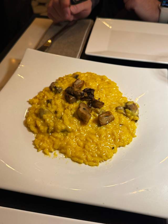 - Riso superfino carnaroli ai funghi porcini trifolati, con zafferano e parmigiano reggiano