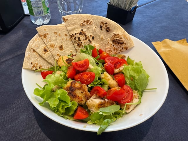Fesa di tacchino, mozzarella, pomodori e insalata