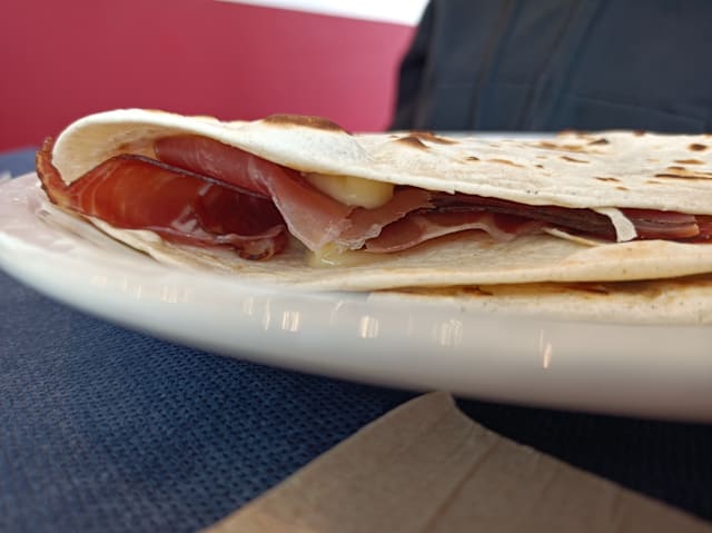 Salsiccia, squacquerone, pancetta alla piastra e salsa ai peperoni piccante